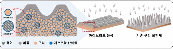 연구팀이 개발한 하이브리드 음극은 구조적으로는 90% 구리 분말과 10%의 흑연 분말 및 지르코늄 산화물이 혼합된 복합체다.