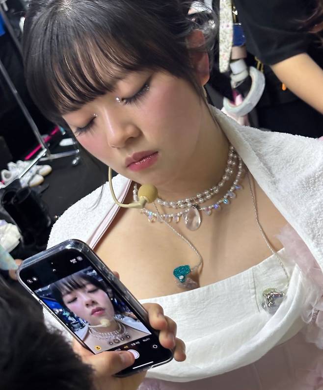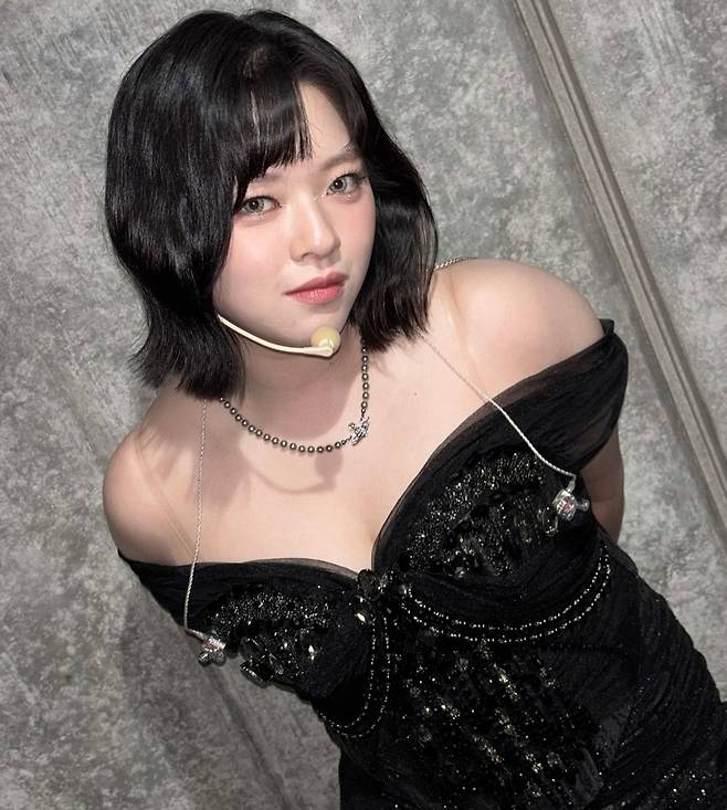 사진에는 콘서트 준비에 한창인 정연의 모습이 담겼다. 정연은 반짝이가 포인트인 검은색 오프숄더 드레스를 입고 공주 비주얼을 뽐내고 있다.