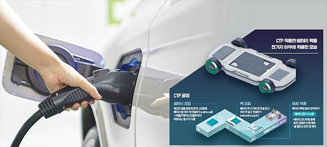중국 CATL 등은 CTP를 넘어 배터리 셀을 전기차 몸체(보디)나 뼈대(섀시)에 붙이는 셀투보디(CTB) 또는 셀투섀시(CTC) 기술을 개발 중이다. 모듈에 이어 팩까지 생략하면 더 많은 셀을 넣어 전기차 주행거리를 늘릴 수 있어서다. 마찬가지로 팩에 들어가는 부품 수도 줄어드니 생산 단가도 절감된다.