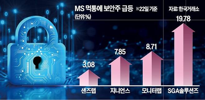 미국 마이크로소프트(MS) 서비스 '먹통' 사태 이후 국내 보안주가 들썩이고 있다.