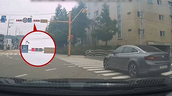 <오! 클릭> 두 번째 검색어는 '빨간 불에 횡단보도 건너는 황당 승용차'입니다.