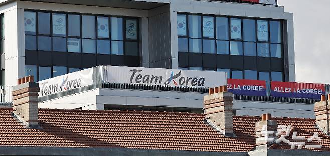 2024파리올림픽 개막을 나흘 앞둔 22일 오전(현지시간) 파리 외곽 생드니에 위치한 올림픽 선수촌 대한민국 대표팀 숙소에 태극기와 팀코리아 현수막이 걸려 있다. 2024.7.22./생드니=올림픽사진공동취재단