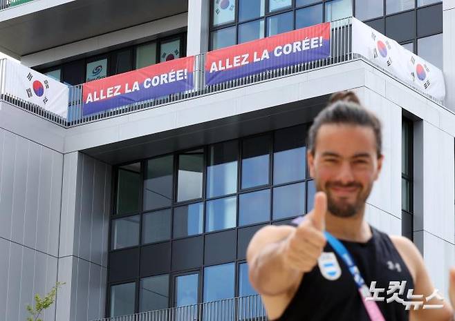 '2024파리올림픽' 개막을 나흘 앞둔 22일 오전(현지시간) 파리 외곽 생드니에 위치한 올림픽 선수촌에 태극기가 걸려 있다. 2024.7.22./생드니=올림픽사진공동취재단JIN