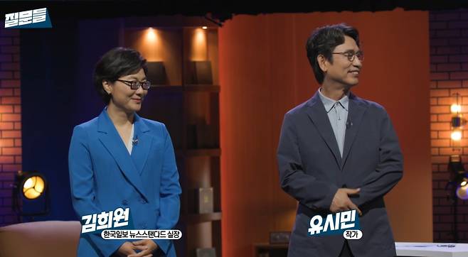2회 절반은 좀 더 논쟁적이었다. 언론과 미디어를 주제로, 유튜브라는 플랫폼이 저널리즘에 미치는 영향을 놓고 대담을 벌였다. 출연자는 유시민 작가와 30년 경력의 <한국일보> 김희원 기자였다. 창과 방패까진 아니지만 대립각은 선명했다.