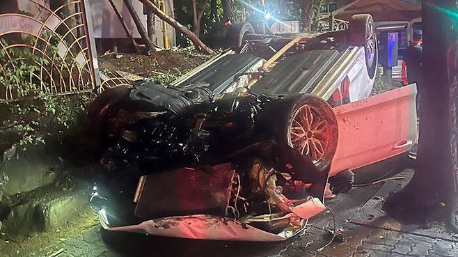 무면허로 렌터카 몰다가 인도서 전복사고…10대 4명 부상