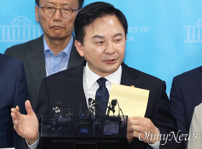 | ▲ 원희룡 "이재명, 민주당 간판 걸고 한 판 붙자" 2023년 7월 6일 원희룡 국토교통부 장관이 국회 소통관에서 기자회견을 열고 ‘서울-양평 고속도로 사업’을 백지화하겠다고 밝혔다. 브리핑을 마치고 이동하던 원 장관은 "이재명 대표는 민주당 간판 걸고 한 판 붙자"고도 했다. |