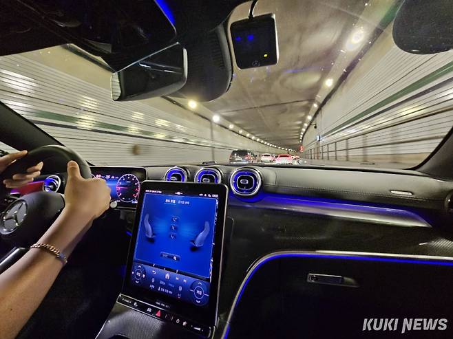 오픈톱 가까이 손을 올려보니 마치 막이 형성된 듯한 느낌이 들었다. 손가락 위로만 거센 바람이 느껴지고 아래에는 잔잔한 바람만 느껴졌다. 머리 위로 공기막을 형성해 외풍이 실내로 유입되지 않는 스포츠카다. 오픈카의 낭만은 외풍의 영향을 많이 받지 않는다는 것만으로도 실현이 가능했다. 다만 주행 중 터널이 곳곳에서 등장해 느긋하게 오픈톱 주행을 즐기긴 어려웠다.