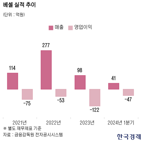 지난해 2월 최대주주가 코스닥 상장기업 더이앤엠으로 바뀐 이후 수주 잔고는 더 줄었다. 베셀의 수주 잔고는 2022년 말 441억에서 2023년 말 261억원, 올해 3월 말 71억원으로 줄었다.