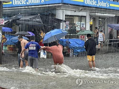 Streets flood from monsoon rains worsened by offshore typhoon Gaemi on Wednesday, July 24, 2024, in Manila, Philippines. (AP Photo/Joeal Capulitan)