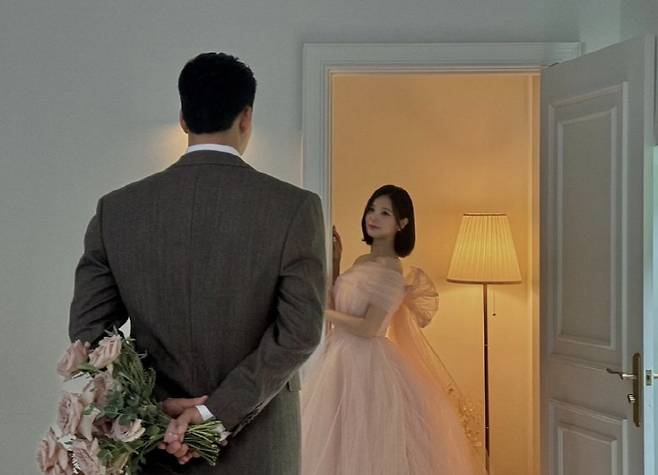 소희가 바라보고 있는 예비신랑은 뒤에 꽃다발을 숨기고 소희를 바라보고 있는 모습. 뒷모습만으로도 커다란 풍채로 눈길을 모은다. 특히 소희는 연예계를 은퇴하고서도 여전한 미모와 분위기를 자아낸다.