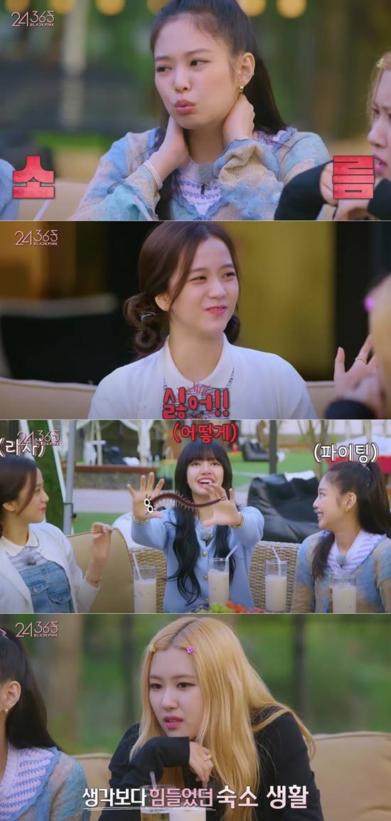 제니는 "사람들이 우리 이사간 다음 숙소부터 기억한다"며 남몰래 고생한 일화를 나누며 멤버들 간 의리를 다졌다.