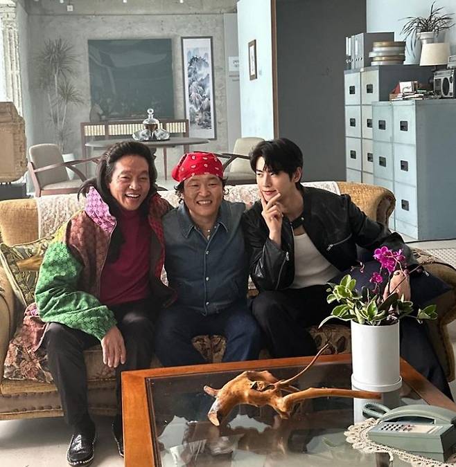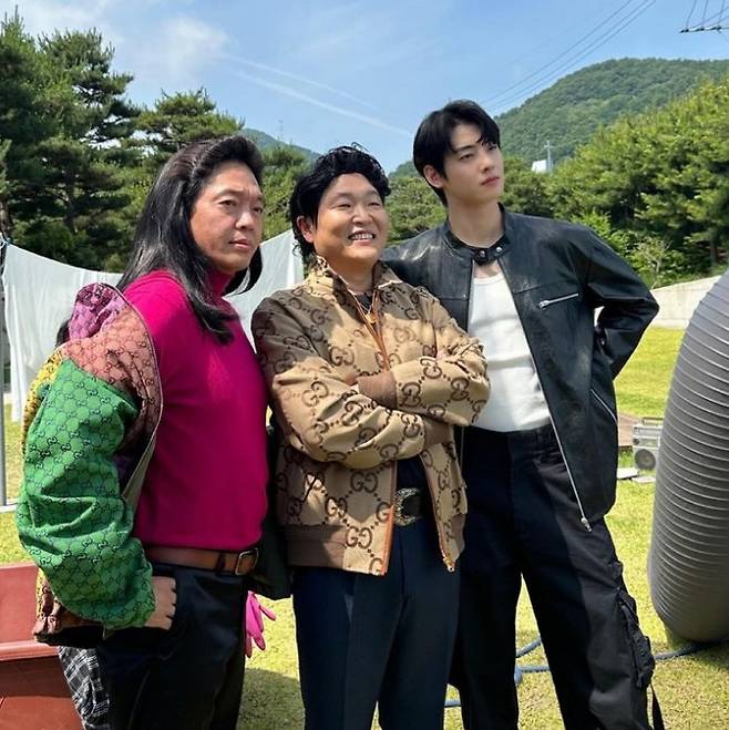 24일 차은우는 "흠뻑쇼"라는 글과 함께 여러 장의 사진을 게재했다. 차은우는 싸이, 배우 박지환과 '흠뻑쇼' 오프닝 영상 지원사격에 나섰다.