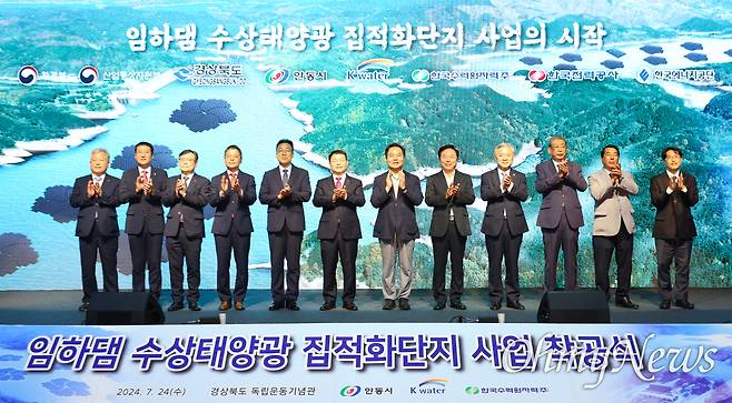 경상북도는 한국수력원자력, 한국수자원공사와 함께 24일 안동시 독립운동기념관에서 '임하댐 수상태양광 집적화단지 조성사업' 착공식을 열고 본격적인 공사에 들어갔다.