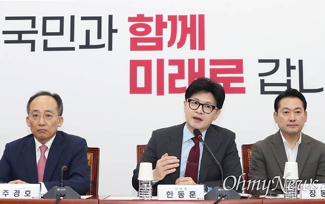 한동훈 대표는 "우리가 얼마나 유능한 정당인지 보여주자"며 "국민의힘은 잘못된 법률이 통과되는 것을 막아내겠다. 제가 앞장서겠다. 원내에서도, 원외에서도 힘 모으겠다"고 재차 강조했다.