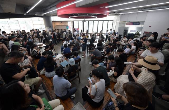 싱가포르 전자상거래 업체 큐텐 계열사인 티몬과 위메프의 정산 지연 사태가 이어지자 새벽부터 수백명의 고객들이 위메프 본사로 몰려와 환불을 요구하며 대기 중이다.