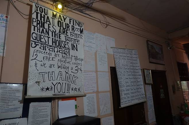 요가 강사이자 기부제 호스텔을 운영하는 소밋은 점성술도 한다며 본인을 소개한다. 좁은 골목을 지나쳐 도착한 호스텔의 홍보 문구가 보인다. '힌두어, 전통 요리, 바라나시 투어…' 다양한 재주를 가진 소밋은 여러 체험으로 관광객을 끌어들인다. 그중 한 문구가 눈에 들어온다. '아이들 지도 봉사 환영.'