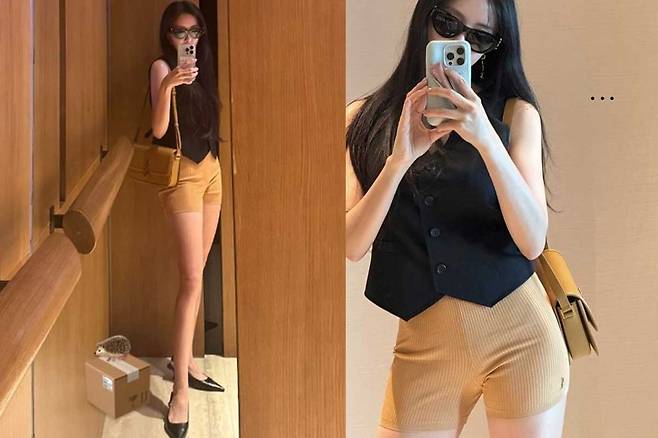 검은색 민소매 상의에 짧은 바지를 입은 효민은 군살 없이 쭉 뻗은 다리를 자랑해 시선을 사로잡았다. 특히 짧은 하의로 효민의 마른 체형이 드러났으며 작은 얼굴과 긴 다리로 모델 같은 비율을 인증했다.