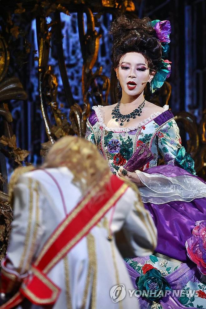 (서울=연합뉴스) 진연수 기자 = 배우 리사가 25일 오후 서울 중구 충무아트센터 대극장에서 열린 뮤지컬 '베르사유의 장미' 프레스콜에서 주요장면을 시연하고 있다. 2024.7.25