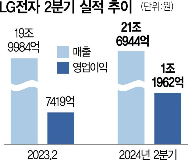 이를 기반으로 LG전자는 2분기 영업이익(연결 기준)이 전년보다 61.2% 증가한 1조 1961억 원을 기록했다. 매출액도 21조 6944억 원으로 매출액·영업이익 모두 역대 2분기 최대치다.