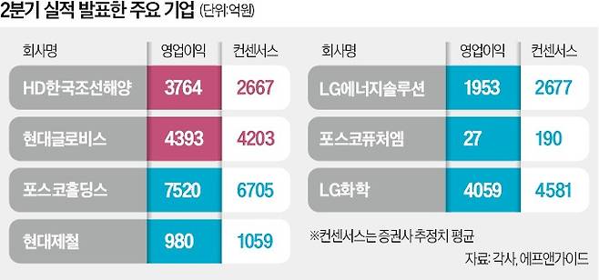 바다가 시장인 국내 조선사와 해운회사들의 ‘어닝 서프라이즈’가 이어지고 있다. 반면 전기차 캐즘(일시적 수요 둔화)이 지속되면서 배터리 회사들은 어닝 쇼크 수준의 성적표를 받고 있다.