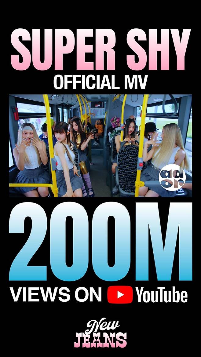 이로써 뉴진스는 'OMG'의 퍼포먼스 버전에 이어 'Super Shy' 뮤직비디오까지 통산 두 번째 2억 뷰 뮤직비디오를 보유하게 됐다.