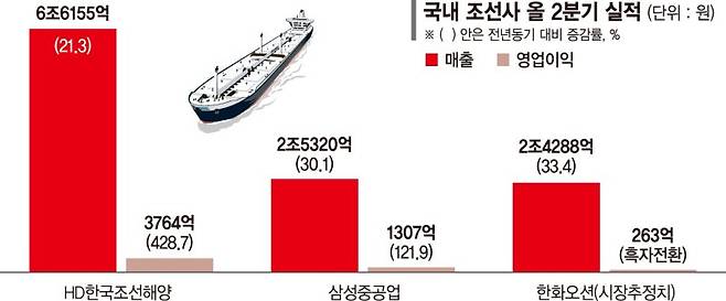 ‘슈퍼사이클’ 조선업계 쾌속항해… 영업익 429%·122% 점프