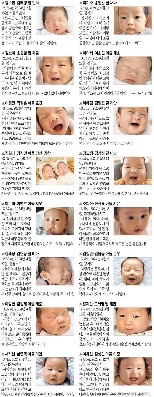 온 가족에게 기쁨을 안겨 준 아기의 탄생을 알려주세요. 홈페이지 주소 입력창에 아가야안녕.com이라고 입력하면 됩니다. 매일유업 육아 정보 사이트 매일아이(maeili.com)를 통해서도 접속할 수 있습니다. 추첨을 통해 출산 소식과 사진이 지면에 실린 가족에게는 ①케이크 구매권 ②엄마와 아기 영양을 챙겨줄 매일유업 ‘탄생 축하 선물’ ③출산 소식을 생일 날짜 본지 1면에 담은 PDF 파일 ④조선일보 1개월 무료 구독권을 드립니다. 당첨자 중 한 가족을 선정하여 해당 지면을 고급 프레임에 담아 제공하는 ‘조선일보 리프린트’도 제작해 드립니다. 홈페이지에서는 맘스 앱솔루트 첫 구매 52% 할인 혜택을 드리고 있습니다.