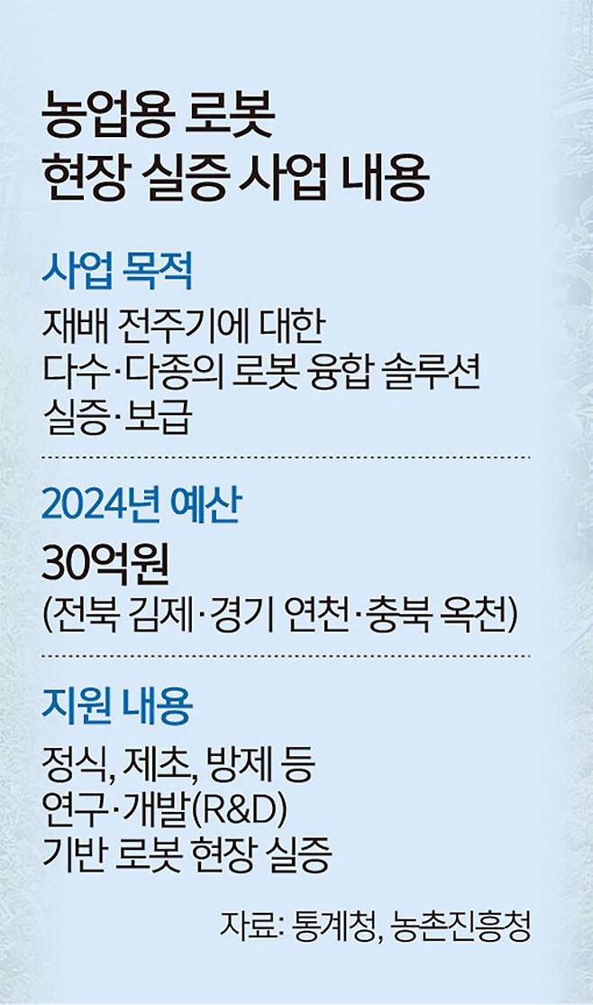 이승돈 농진청 국립농업과학원장은 “일할 사람이 부족한 상황에서 식량 안보를 지키려면 로봇 기술은 선택이 아니라 필수”라며 “농업·농촌에 필요한 로봇을 개발하고 농가에 빠르게 보급·확산해 농가소득 증대, 편이성 제공 등에 최선을 다하겠다”고 말했다.