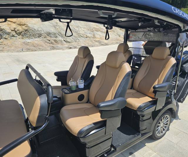 리무진 카트에는 강도 조절이 가능한 통풍 시트가 깔려있고 성능 좋은 선풍기가 장착돼있다. 독립형 좌석이라 다닥다닥 붙어 앉을 일 없고 좌석과 좌석 사이엔 보온·보냉 기능을 갖춘 컵홀더와 개인별 휴대폰 무선충전기도 있다. 겨울엔 열선 시트로 따뜻하다.