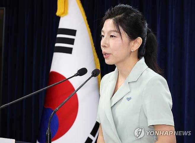 (서울=연합뉴스) 최재구 기자 = 통일부 김인애 부대변인이 26일 서울 종로구 정부서울청사에서 통일부 정례브리핑을 하고 있다.2024.7.26