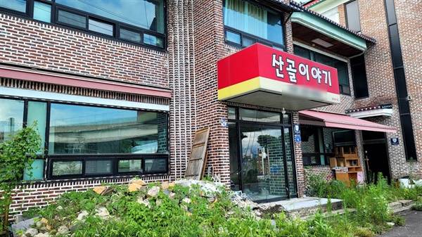 | ▲ 늘봄가든이 있던 자리. 현재 산골이야기 간판이 걸려있으나 영업은 하지 않는다 |