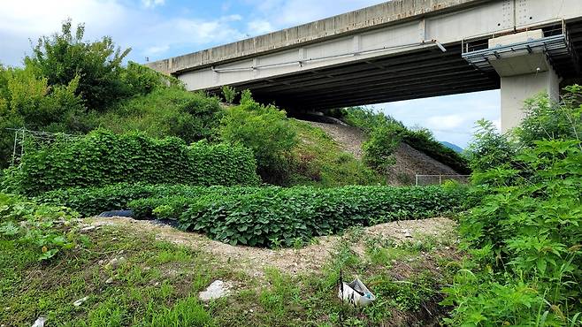 | ▲ 인근에 뚫린 고속도로 늘봄가든 인근에 위쪽으로 중앙고속도로가 건설됐고 제천~원주 국도도 선형개량작업이 진행됐다 |