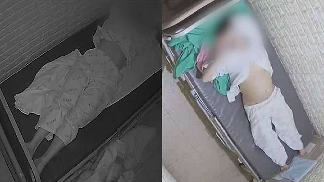 밤늦게까지 문을 두드리자 간호조무사와 보호사 등이 약을 먹인 뒤 여성을 침대에 묶습니다.