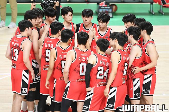 [점프볼=상주/박상혁 기자] 26일 상주체육관 신관에서 열린 제40회 MBC배 전국대학농구 고려대와 연세대의 남대부 결승전 경기, 고려대 선수들이 화이팅을 외치고 있다.