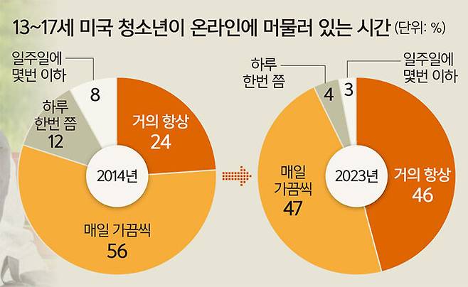 청소년의 스마트폰 제한 논의가 가장 활발하게 이루어지고 있는 곳은 SNS 업계를 주도하는 거대기술(빅테크) 기업들의 본거지인 미국이다. 미국은 지난해에만 13개 주에서 청소년의 SNS를 제한하는 것과 관련된 법률 23개가 통과됐다. 이 중 일부 주는 매우 강력한 규제를 도입했는데 플로리다주의 경우 2025년부터 14~15세 청소년이 SNS에 계정을 만들기 위해서는 부모의 동의를 받아야 하고, 14세 미만의 경우에는 아예 가입을 할 수 없다.