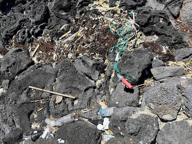 | ▲ 토끼섬 주변 해안으로 밀려 올라온 해양쓰레기 |