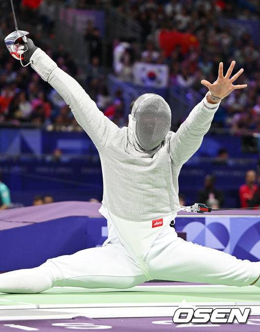 ![[OSEN=파리(프랑스), 최규한 기자] 27일(한국시간) 프랑스 파리 그랑 팔레에서 ‘2024 파리올림픽’ 펜싱 남자 사브르 32강전 경기가 열렸다.이날 열리는 경기는 에페 여자 개인전과 사브르 남자 개인전이다. 여자 에페 개인전에서는 송세라, 강영미, 이혜인이 출격한다. 남자 사브르 개인전에는 오상욱, 박상원, 구본길이 나선다. 에페와 사브르 개인전은 하루만에 32강부터 16강, 8강, 4강, 결승이 모두 진행된다.펜싱 오상욱이 32강전을 따낸 뒤 기뻐하고 있다. 2024.07.27 / dreamer@osen.co.kr](https://img3.daumcdn.net/thumb/R658x0.q70/?fname=https://t1.daumcdn.net/news/202407/27/poctan/20240727234555456svry.jpg)