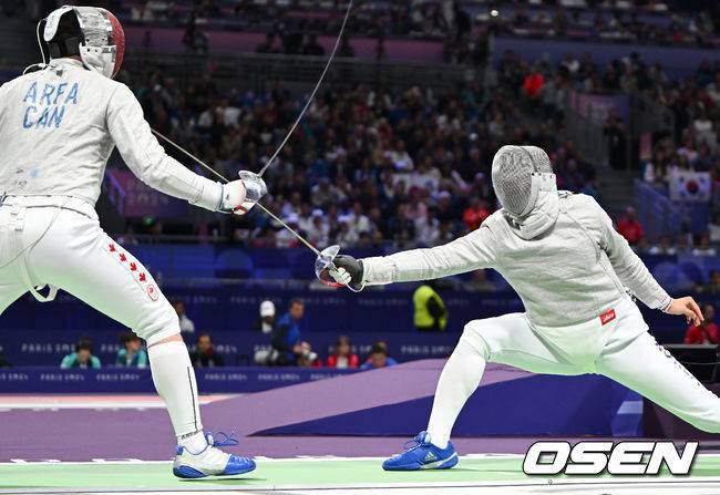 ![[OSEN=파리(프랑스), 최규한 기자] 27일(한국시간) 프랑스 파리 그랑 팔레에서 ‘2024 파리올림픽’ 펜싱 남자 사브르 32강전 경기가 열렸다.이날 열리는 경기는 에페 여자 개인전과 사브르 남자 개인전이다. 여자 에페 개인전에서는 송세라, 강영미, 이혜인이 출격한다. 남자 사브르 개인전에는 오상욱, 박상원, 구본길이 나선다. 에페와 사브르 개인전은 하루만에 32강부터 16강, 8강, 4강, 결승이 모두 진행된다.펜싱 오상욱이 32강전을 따낸 뒤 기뻐하고 있다. 2024.07.27 / dreamer@osen.co.kr](https://img3.daumcdn.net/thumb/R658x0.q70/?fname=https://t1.daumcdn.net/news/202407/27/poctan/20240727234551597nsgt.jpg)