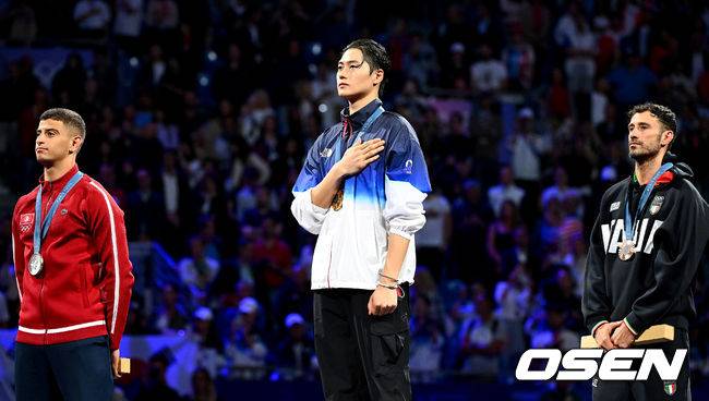 한국 관중들에게서 오상욱을 향해서 '집중해'라는 콜이 나왔다. 이 말이 힘이 됐을까. 오상욱은 상대의 공세를 침착하게 저지하면서 1점을 추가하면서 염원의 금메달을 목에 걸었다. 한편 올림픽 개회식서 한국 선수단의 입장 장면에서 장내 아나운서가 북한이라고 호칭해서 많은 물의를 일으킨 프랑스 올림픽 조직위가 다시 한 번 사고를 쳤다.