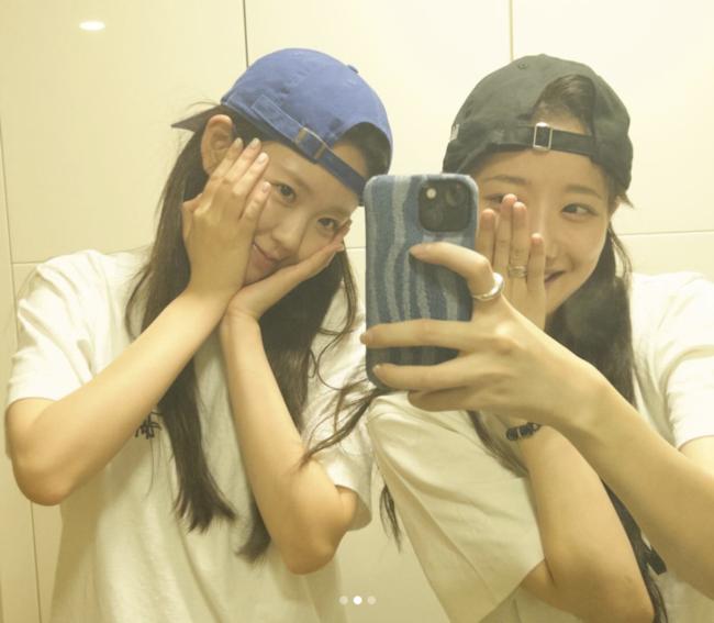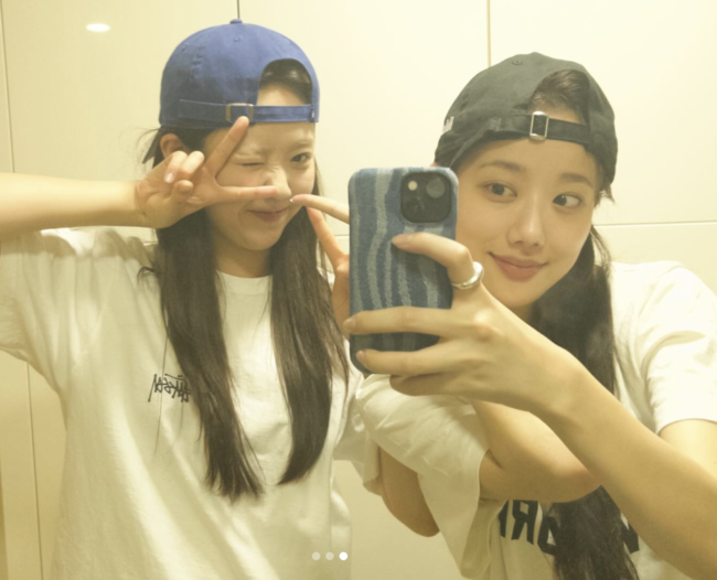 다른 사진 속에서는 이나은과 함께 포즈를 취하며 셀카를 찍어 귀여움을 뽐냈다.