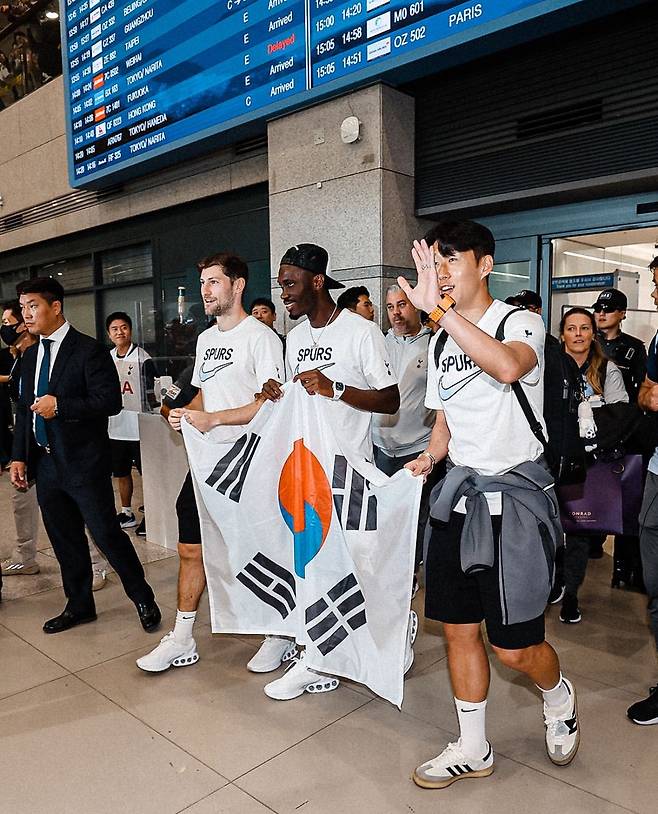 한편 토트넘 선수단 본진은 드라구신보다 이른 오후 2시 30분께 인천국제공항 제1여객터미널을 통해 입국했다. 손흥민은 벤 데이비스, 이브 비수마 등 동료와 함께 태극기를 들고 입국장에 등장했다.