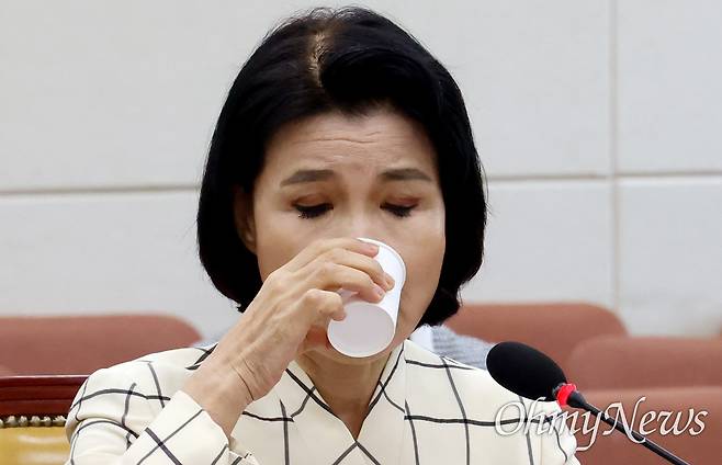 | ▲ 자료 제출 미비를 이유로 이진숙 방송통신위원장 후보자에 대한 인사청문회가 이틀에서 사흘로 연장된 26일 오전 서울 여의도 국회 과학기술정보방송통신위원회에서 열린 인사청문회에서 이 후보자가 의원들의 질의에 답변한 뒤 물을 마시고 있다. |