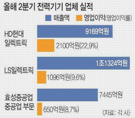 28일 업계에 따르면 전력기기 업체들은 올해 2분기 기대 이상의 성적표를 받았다. 데이터센터 증가와 전기화 추세로 인한 전력 수요 증가, 미국 내 노후 전력기기 교체 수요가 더해진 전력기기 슈퍼 사이클이 원인으로 지목된다. HD현대일렉트릭 2분기 매출은 지난해 같은 기간보다 43% 증가한 9169억원, 영업이익은 257% 늘어난 2100억원을 기록했다. 영업이익률은 22.9%로, 경쟁사인 LS일렉트릭(9.6%)과 효성중공업 중공업 부문(8.7%)보다 2배 이상 높다.