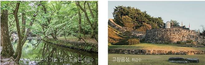 고창하면 선운사를 빼놓을 수 없다. 신라 진흥왕이 창건했다는 설도 있고 577년(백제 위덕왕 24) 검단선사가 창건했다는 설도 있다. 지금은 전북 지역에서 김제 금산사와 함께 가장 크다. 선운사는 평지 사찰이다. 강당과 대웅전, 여러 법당이 한 마당에 모여 있다. 보물 제290호인 대웅보전, 보물 제279호인 금동보살좌상 등 많은 문화재가 있는 절이기도 하다. 선운사는 절 자체도 곱지만 도솔천을 따라가는 길이 멋스럽다. 늙은 나무들이 계곡 위로 터널처럼 우거져 있다. 선운산의 다른 이름은 도솔산. 선운은 구름 속에서 참선한다는 뜻이고 도솔은 미륵불이 있는 도솔천궁을 의미한다. 절에서 도솔암 마애불과 낙조대까지의 산책로가 또 다른 매력이다. 선운사에서 1시간쯤 오르면 도솔암에 닿는다. 시인 정찬주는 도솔암 가는 길을 ‘인간 세상에서 하늘로 가는 기분’이라고 할 만큼 빼어나다고 했다. 도솔암 언저리에는 수령 600년의 장사송(長沙松)이 우산처럼 가지를 펼치고 서서 부처가 설법으로 중생을 모으듯 여행객을 불러 모으고 있다. 선운사에서 차로 10분 정도 가면 서정주 시인의 고향 마을에 미당시문학관이 자리한다. 폐교된 봉암초등학교 선운분교를 개조해서 꾸몄다. 미당의 작품 활동과 관련한 다양한 전시물을 살펴볼 수 있다. 옥상에서 미당의 고향인 질마재마을 너머로 변산반도가 아스라이 보인다.