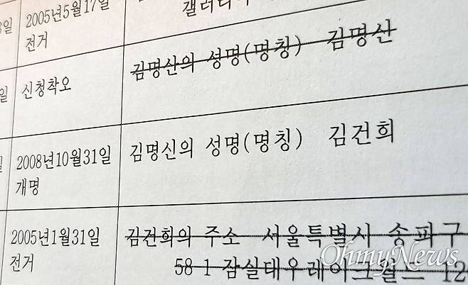 | ▲ 김건희 여사 가족 소유 부동산등기부에 따르면 김 여사의 개명일은 2008년 10월 31일이다. |
