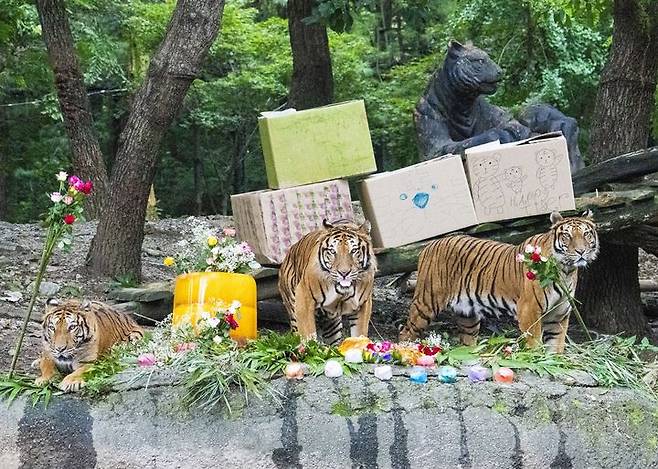 세계 호랑이의 날, 얼음 케이크 먹는 에버랜드 호랑이들