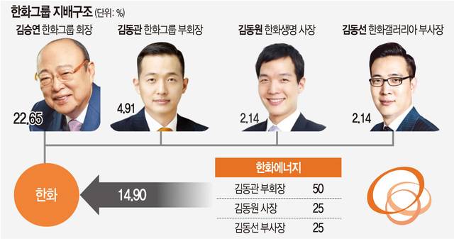 '오너 3세→한화에너지→한화→그룹 계열사'로 지배구조가 순환한다.