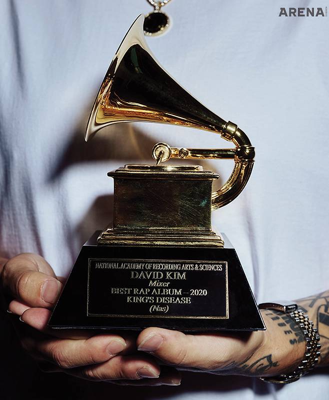 영인은 서울 월계동 출신의 첫 번째 그래미 수상자다. 그가 부모님과 함께 미국으로 떠난 건 네 살 때. 여덟 살이 된 데이비드는 엄마를 졸라 레코드 숍에서 생애 첫 앨범을 손에 넣었다. 나스의 <It was Written>이었다. 그는 할리우드의 유명 실용음악 대학 뮤지션스 인스티튜트(MI)를 졸업하고 믹스 엔지니어가 됐다. 그는 켄드릭 라마의 <To Pimp a Butterfly>, 닙시 허슬의 <Racks in the Middle>에도 참여해 ‘그래미 어워드’를 수상했지만, 모든 곡을 믹스하지 않아 트로피가 아닌 상패만 받았다. 그리고 2021년, 데이비드 김은 마침내 첫 그래미 트로피를 손에 넣었다. 트로피 아래에는 ‘David Kim’과 더불어 특별한 이름이 하나 더 새겨져 있다. ‘Nas’. 영인은 어린 시절부터 그토록 열광하던 나스의 정규 앨범 <King’s Disease> 믹스 엔지니어로서 그래미에 이름을 올렸다. 그해 ‘베스트 랩 앨범’으로 선정된 <King’s Disease>는 나스의 첫 그래미 수상작이다.