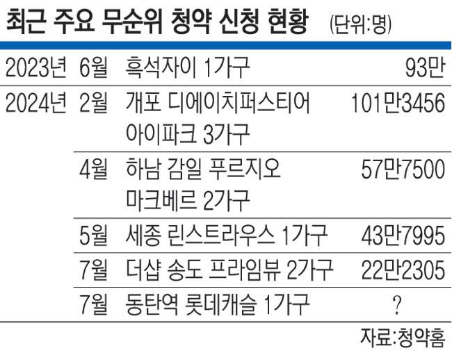 이 가운데 시세 차익이 수억 원대에 달하는 로또 아파트가 청약 시장에 등장하자 실수요 여부에 상관없이 신청자가 몰린 것이다.