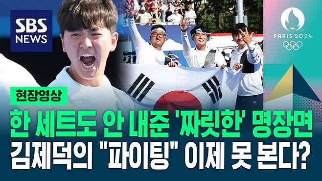한국 양궁 대표팀이 올림픽 단체전 남녀 동반 3연패를 이뤄냈습니다. 김우진(청주시청), 김제덕(예천군청), 이우석(코오롱)으로 이뤄진 남자 대표팀은 30일(한국시간) 프랑스 파리의 레쟁발리드에서 열린 2024 파리 올림픽 양궁 남자 단체전 결승에서 프랑스에 5-1(57-57 59-58 59-56)로 이겨 우승했습니다. 2016년 리우데자네이루 대회와 2021년 도쿄 대회에서 이 종목 우승을 차지한 한국 남자 양궁은 이로써 올림픽 단체전 3연패를 달성했는데요. 금메달 획득의 순간 현장영상에 담았습니다.